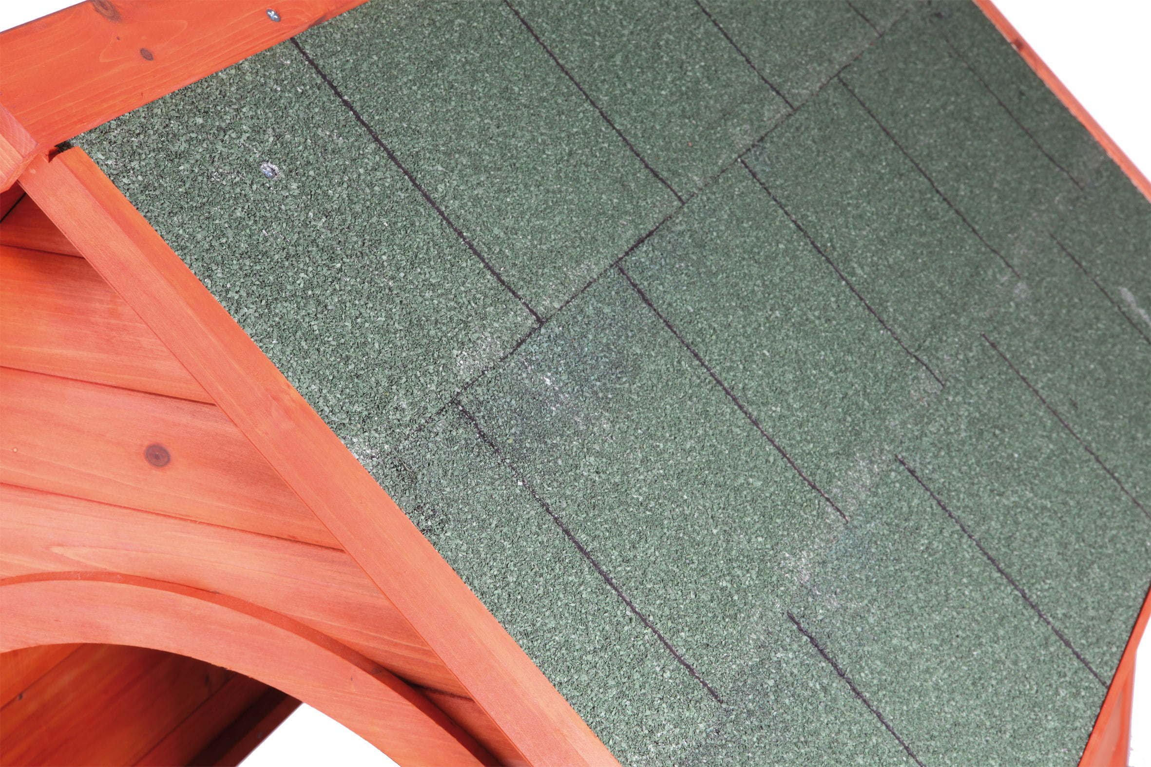 Heavy-duty mineral roofing felt, weatherproof sealer, and plastic cover feet provide ultimate protection for long-term outdoor use Peaked roof sheds rainwater fast; the roof overhang ensures rainwater falls away from the house and reduces splashback Adjustable rot free plastic cap feet allow your House to be level, even on uneven ground Elevated floor to keep moisture out on rainy days and proper airflow Floor panels are removable for easy cleaning Suitable for small sized dogs up to 20 lbs such as a Sheltie Interior Dimensions: 22.25" L x 21.25" W x 24.75" H; Door opening: 9.25" W x 13.25" H Door Accessory - Door Flaps Model 39590 will provide added protection again wind and rain