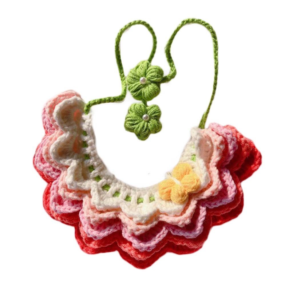 Handmade Crochet Pet Collar Cute Knitted Rainbow Necklace Collar Cat Dog Pink Gradient Scarf Bib