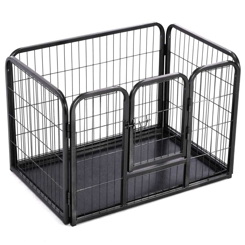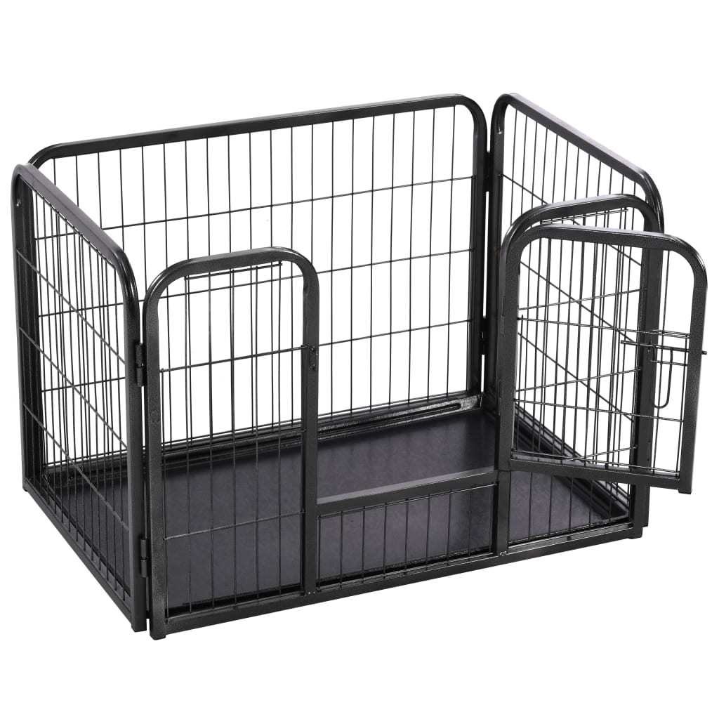 This dog playpen can be easily set up or taken down. It features a hinged door with a security latch for easy access. This durable and weather-resistant playpen is made of rustproof powder-coated steel; making it suitable for outdoor and indoor use. A plastic bottom tray is also included in the delivery.Color: BlackMaterial: Powder-coated steelOverall dimensions: 36" x 23.2" x 24" (W x D x H)Door size: 12.2" x 16.5" (W x H)With 1 hinged door with a security latchSuitable for indoor and outdoor useEasy to assembleIncluding a plastic bottom tray
