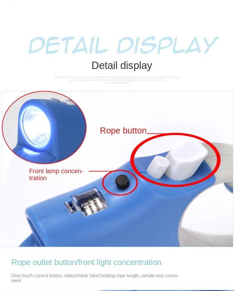 [DURABLE RETRACTABLE DOG LEASH] This durable nylon dog leash that would handle any powerful large dogs; up to 55lbs; as well as medium sized and smaller dogs; giving them maximum freedom with one hand control. [SOLID ABS CASE & COMFORTABLE HANDLE] Durable ABS plastic housing; ergonomic handle and anti-slip soft handle; which fits your hands well like a glove. [BRAKE & LOCK SAFETY SYSTEM] The reliable brake & lock button ensures the capability to adjust the length of the leash as you need. Walk your dog in the controlled area as you like. [BRIGHT LED FLASHLIGHT] Give you maximum visibility and safety while walking at night. This will lead to more enjoyable & safer nighttime walks ( batteries included). [DOG WASTE DISPENSER AND BAGS INCLUDED] Comes with a free roll of plastic bags tucked in a bone-shaped cone for you to quickly clean up the mess your dog leaves on those untimely occasions.