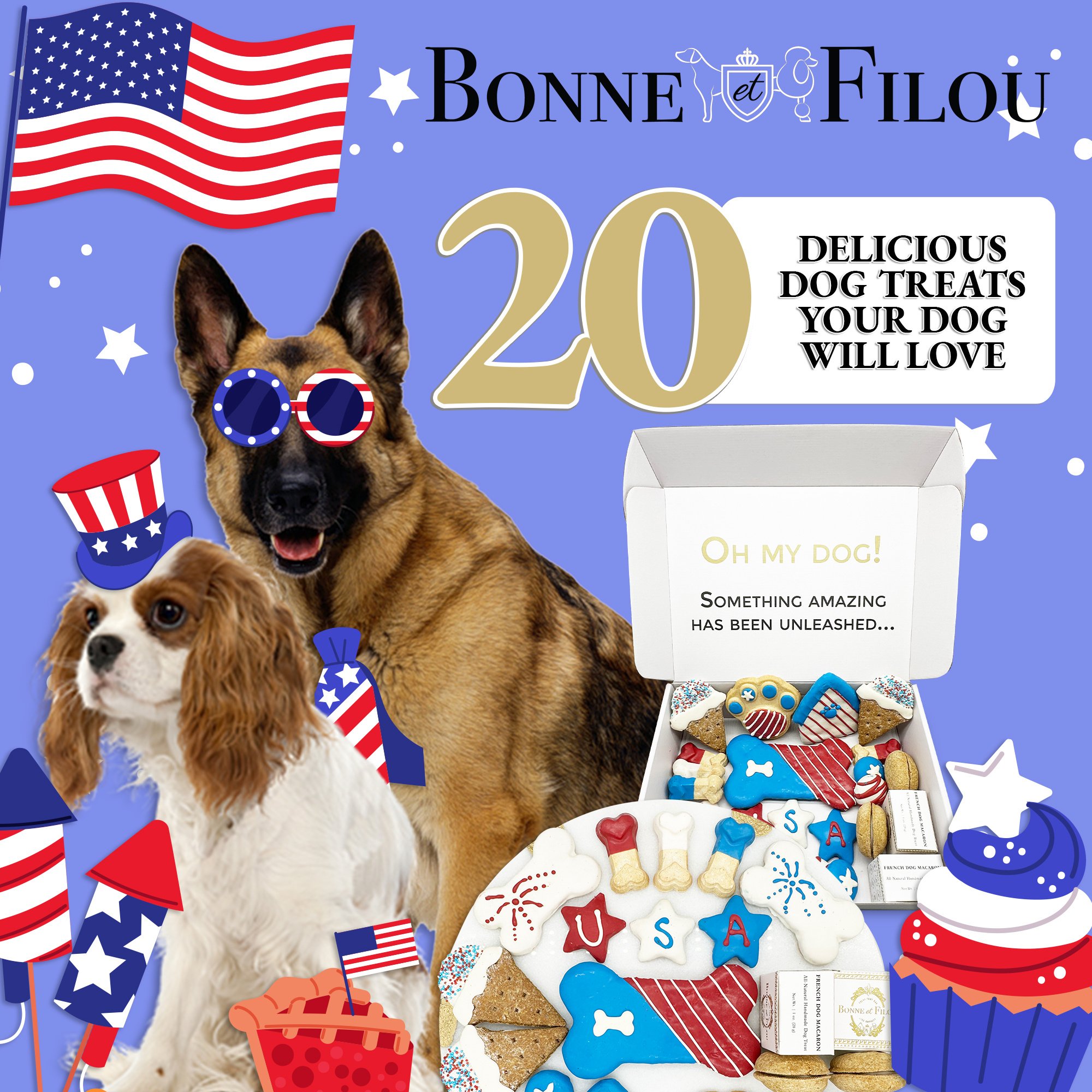 Give your furry friend the gift of patriotic yumminess with Bonne et Filou's USA themed treat box!